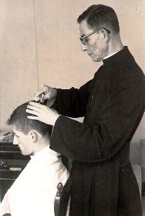 El pasado 20 de noviembre falleció Monseñor don Fabio Betancur Tirado, Arzobispo Emérito de Manizales, en Colombia. Un amable lector nos remite estas dos fotografías en las que el futuro arzobispo, entonces joven seminarista, es tonsurado. Evidentemente no se trata de la solemne ceremonia de tonsura, sino de un simpático testimonio de la vida cotidiana de un seminarista.